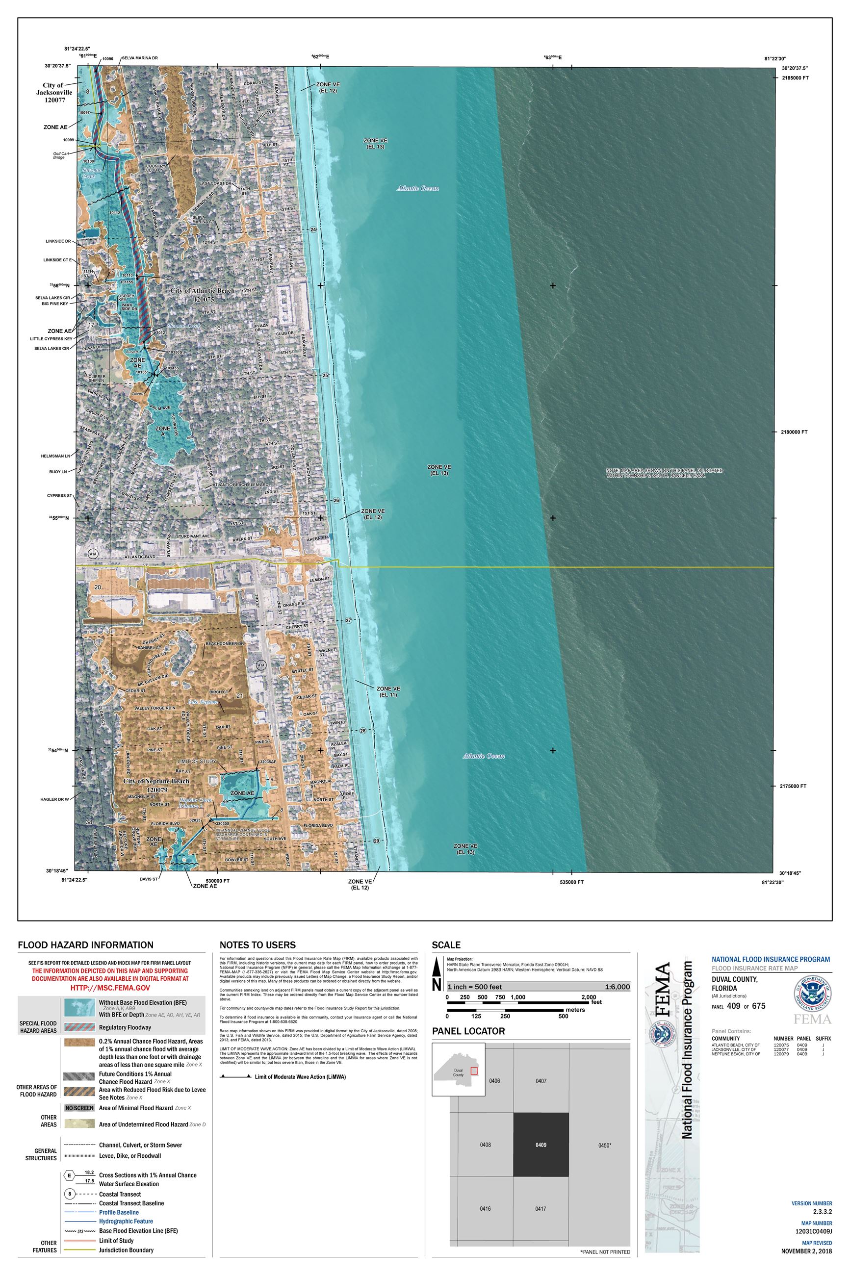 Map Number: 12031C0409J Community: City of Atlantic Beach (120075) Panel: 409JEffective Date: Nov. 2, 2018